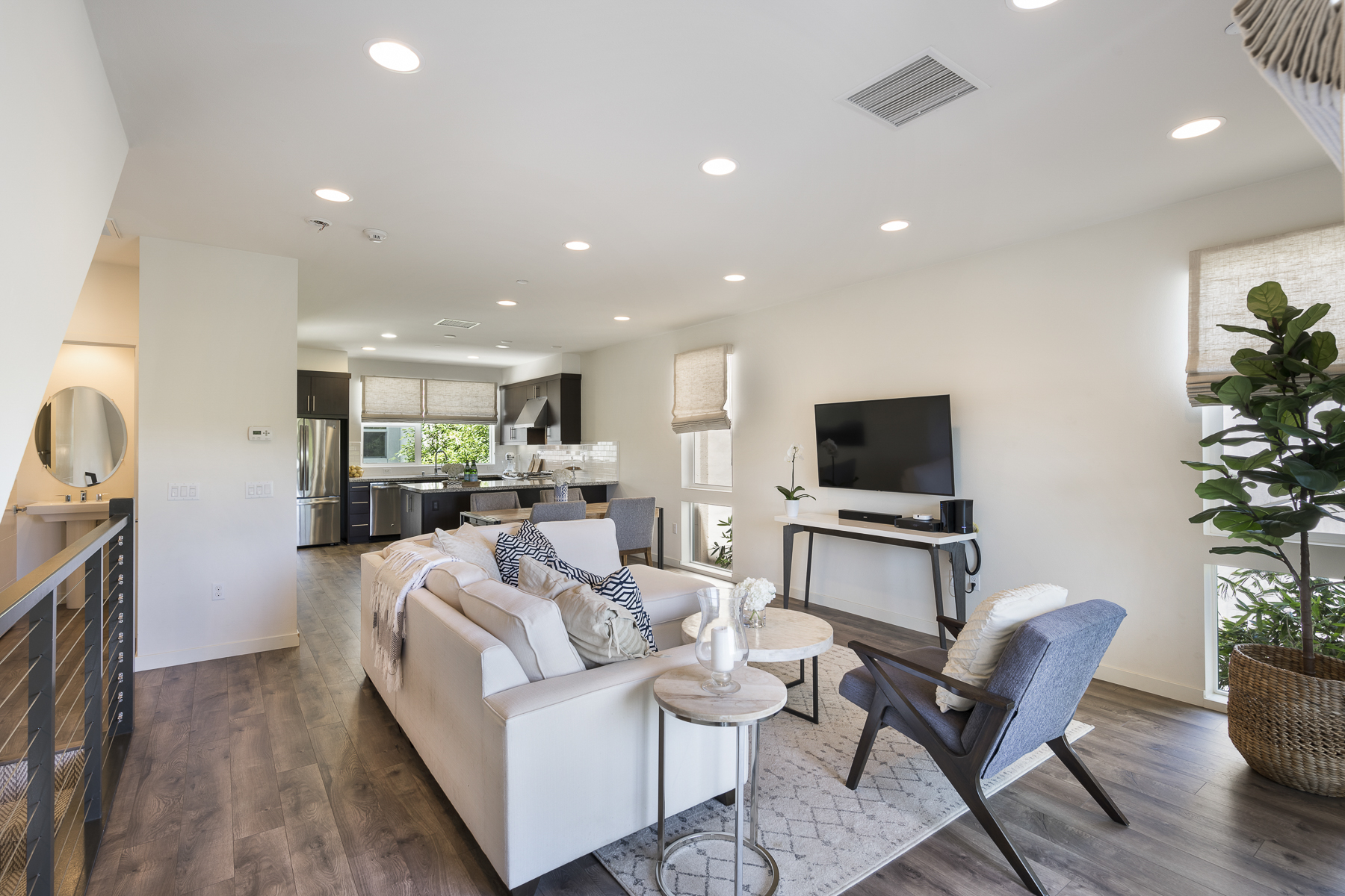 Welcome to Level One Community, a Coastal Modern Luxury live/work townhome just minutes to the beach. Offering a panoramic rooftop deck with ocean and city views you will enjoy! Bottom floor can be designated a business/home office/gym/game room or a 3rd bedroom with a full bathroom! This bonus room includes a roll up door out to a patio and 2 car finished garage. The second floor is comprised of a gourmet kitchen, granite counters, stainless appliances, contemporary cabinetry with butler’s pantry. It opens to the light bright great room and another balcony and bathroom, all with stylish engineered wood flooring and custom window treatments. Third floor includes a spacious master bedroom and bath, an additional bedroom, full bath and inside laundry. This floor also gives access to the property’s most unique feature, the rooftop deck. This amazing space is 600+ sq ft with 360 degree views your family and friends won’t want to miss. As a bonus this townhome is an end unit with open windows and no Mello Roos! Located within close proximity of walking or biking to excellent schools, award winning restaurants, shopping, Newport Beach and Harbor, 55 & 405 freeways and John Wayne Airport.